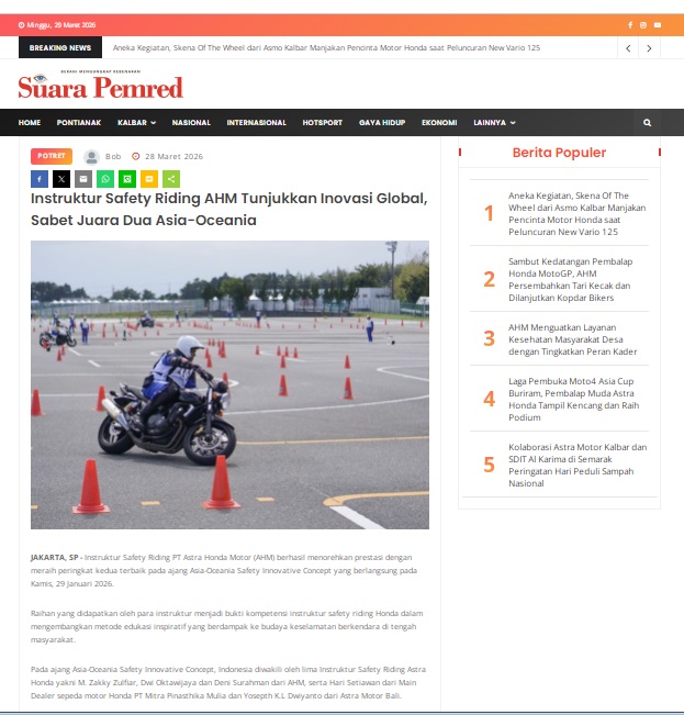 Instruktur Safety Riding AHM Tunjukkan Inovasi Global, Sabet Juara Dua Asia-Oceania by masmul 28 Maret 2026 in Silahkan kunjungi https://www.suarapemredkalbar.com/read/potret/28032026/instruktur-safety-riding-ahm-tunjukkan-inovasi-global-sabet-juara-dua-asia-oceania. You Might Like Regional Public Launching New ADV160 The SUV Pride Grand Launching New PCX 160 Truly Exceptional! Tetap hati-hati ya bro sist berkendara saat hujan.