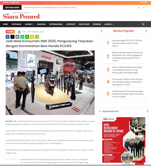 Jadi Idola Konsumen IIMS 2025, Pengunjung Terpukau dengan Kemewahan New Honda PCX160 by masmul 20 Maret 2025 in Silahkan kunjungi https://www.suarapemredkalbar.com/read/potret/20032025/jadi-idola-konsumen-iims-2025-pengunjung-terpukau-dengan-kemewahan-new-honda-pcx160. You Might Like Regional Public Launching New ADV160 The SUV Pride Grand Launching New PCX 160 Truly Exceptional! Tetap hati-hati ya bro sist berkendara saat hujan.