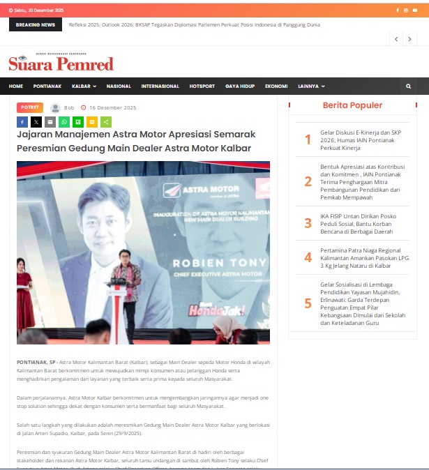 Jajaran Manajemen Astra Motor Apresiasi Semarak Peresmian Gedung Main Dealer Astra Motor Kalbar by masmul 16 Desember 2025 in Silahkan kunjungi https://www.suarapemredkalbar.com/read/potret/16122025/jajaran-manajemen-astra-motor-apresiasi-semarak-peresmian-gedung-main-dealer-astra-motor-kalbar. You Might Like Regional Public Launching New ADV160 The SUV Pride Grand Launching New PCX 160 Truly Exceptional! Tetap hati-hati ya bro sist berkendara saat hujan.