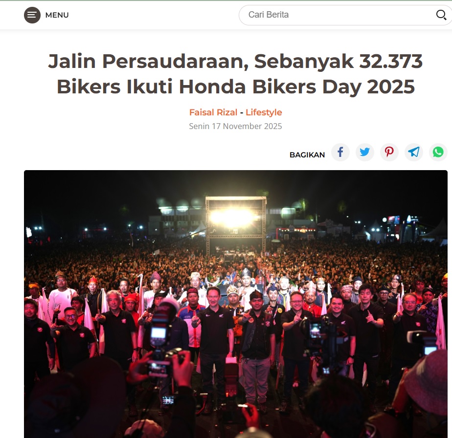 Jalin Persaudaraan, Sebanyak 32.373 Bikers Ikuti Honda Bikers Day 2025 by Dodi Dodi 17 November 2025 in Silahkan kunjungi https://harianberkat.com/2025/11/17/jalin-persaudaraan-sebanyak-32-373-bikers-ikuti-honda-bikers-day-2025/. You Might Like Regional Public Launching New ADV160 The SUV Pride Grand Launching New PCX 160 Truly Exceptional! Tetap hati-hati ya bro sist berkendara saat hujan.