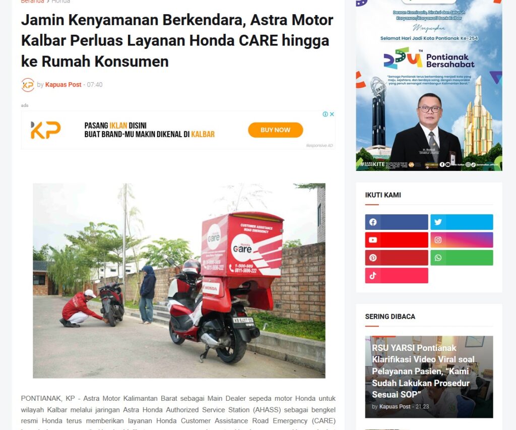 Jamin Kenyamanan Berkendara, Astra Motor Kalbar Perluas Layanan Honda CARE hingga ke Rumah Konsumen by Muhammad Arif 30 Oktober 2025 in Silahkan kunjungi https://www.kapuaspost.web.id/2025/10/jamin-kenyamanan-berkendara-astra-motor.html. Tags: astra Astra Motor kalbar Astra Motor Pontianak astramotor honda kalbar pontianak sepeda motor You Might Like Regional Public Launching New ADV160 The SUV Pride Grand Launching New PCX 160 Truly Exceptional! Tetap hati-hati ya bro sist berkendara saat hujan.