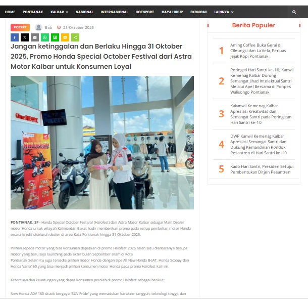 Jangan ketinggalan dan Berlaku Hingga 31 Oktober 2025, Promo Honda Special October Festival dari Astra Motor Kalbar untuk Konsumen Loyal by masmul 23 Oktober 2025 in Silahkan kunjungi https://www.suarapemredkalbar.com/read/potret/23102025/jangan-ketinggalan-dan-berlaku-hingga-31-oktober-2025-promo-honda-special-october-festival-dari-astra-motor-kalbar-untuk-konsumen-loyal. You Might Like Regional Public Launching New ADV160 The SUV Pride Grand Launching New PCX 160 Truly Exceptional! Tetap hati-hati ya bro sist berkendara saat hujan.