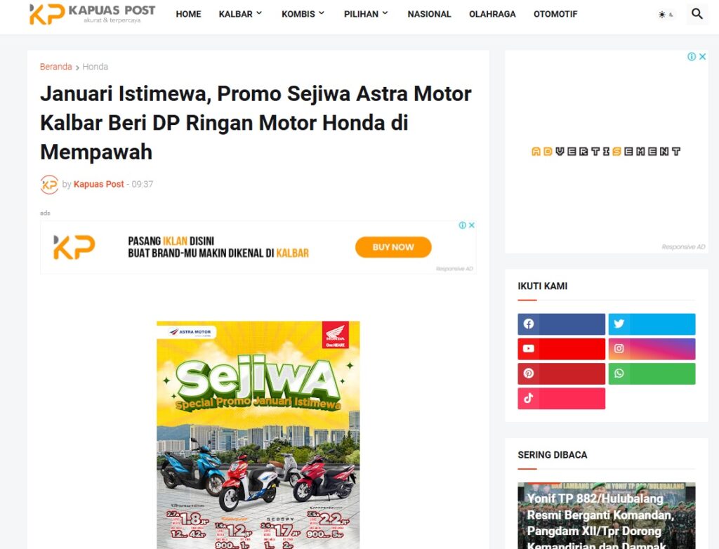 Januari Istimewa, Promo Sejiwa Astra Motor Kalbar Beri DP Ringan Motor Honda di Mempawah by Muhammad Arif 25 Januari 2026 in Silahkan kunjungi https://www.kapuaspost.web.id/2026/01/januari-istimewa-promo-sejiwa-astra.html. Tags: astra Astra Motor kalbar Astra Motor Pontianak astramotor honda kalbar pontianak sepeda motor You Might Like Regional Public Launching New ADV160 The SUV Pride Grand Launching New PCX 160 Truly Exceptional! Tetap hati-hati ya bro sist berkendara saat hujan.