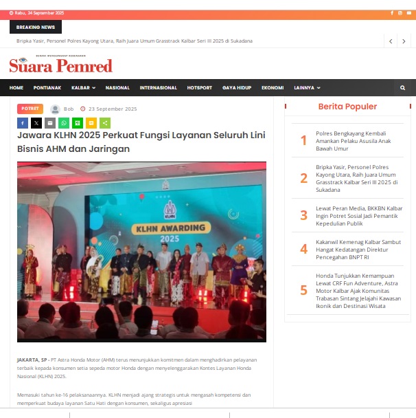 Jawara KLHN 2025 Perkuat Fungsi Layanan Seluruh Lini Bisnis AHM dan Jaringan by masmul 23 September 2025 in Silahkan kunjungi https://www.suarapemredkalbar.com/read/potret/23092025/jawara-klhn-2025-perkuat-fungsi-layanan-seluruh-lini-bisnis-ahm-dan-jaringan. You Might Like Regional Public Launching New ADV160 The SUV Pride Grand Launching New PCX 160 Truly Exceptional! Tetap hati-hati ya bro sist berkendara saat hujan.