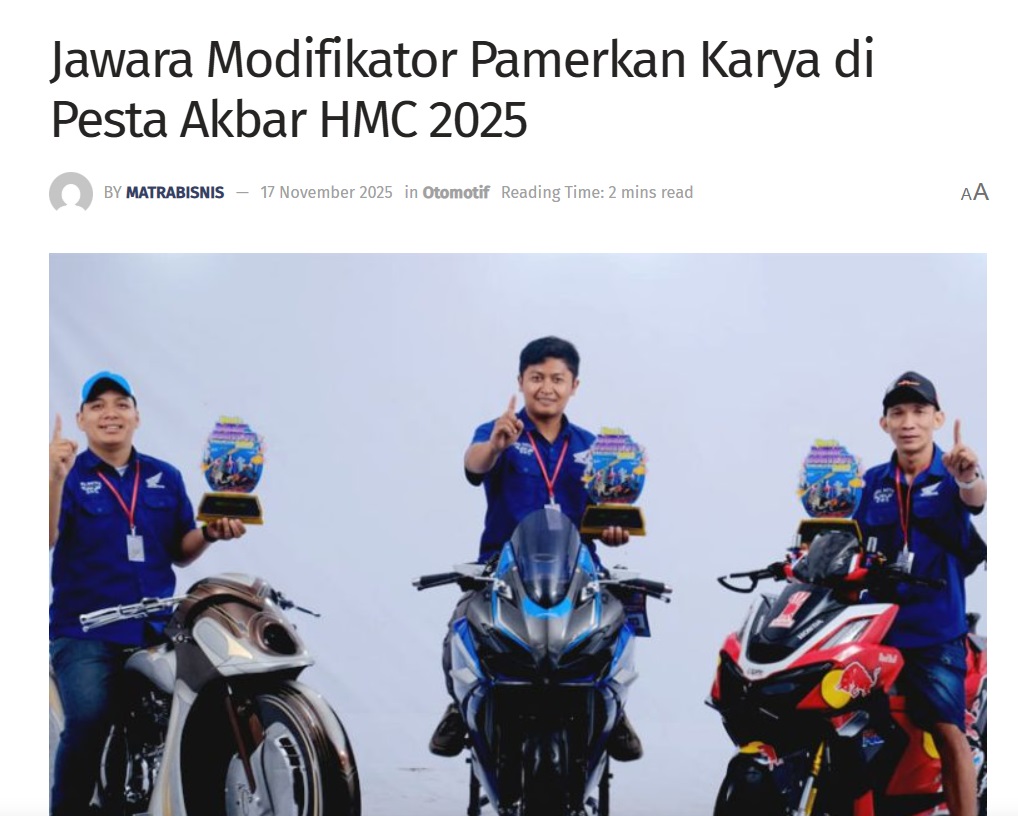 Jawara Modifikator Pamerkan Karya di Pesta Akbar HMC 2025 by Sri Yuliantiningsih 17 November 2025 in Silahkan kunjungi https://matrabisnis.id/2025/11/17/jawara-modifikator-pamerkan-karya-di-pesta-akbar-hmc-2025/. You Might Like Regional Public Launching New ADV160 The SUV Pride Grand Launching New PCX 160 Truly Exceptional! Tetap hati-hati ya bro sist berkendara saat hujan.