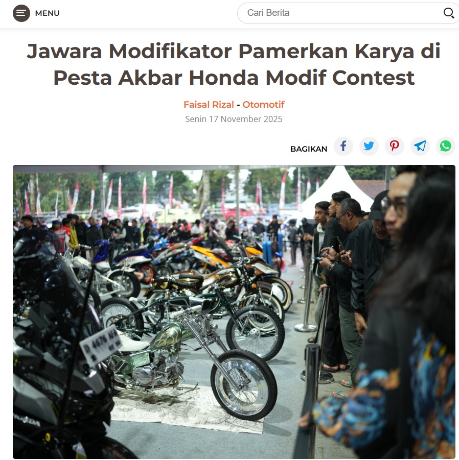 Jawara Modifikator Pamerkan Karya di Pesta Akbar Honda Modif Contest by Dodi Dodi 17 November 2025 in Silahkan kunjungi https://harianberkat.com/2025/11/17/jawara-modifikator-pamerkan-karya-di-pesta-akbar-honda-modif-contest/. You Might Like Regional Public Launching New ADV160 The SUV Pride Grand Launching New PCX 160 Truly Exceptional! Tetap hati-hati ya bro sist berkendara saat hujan.
