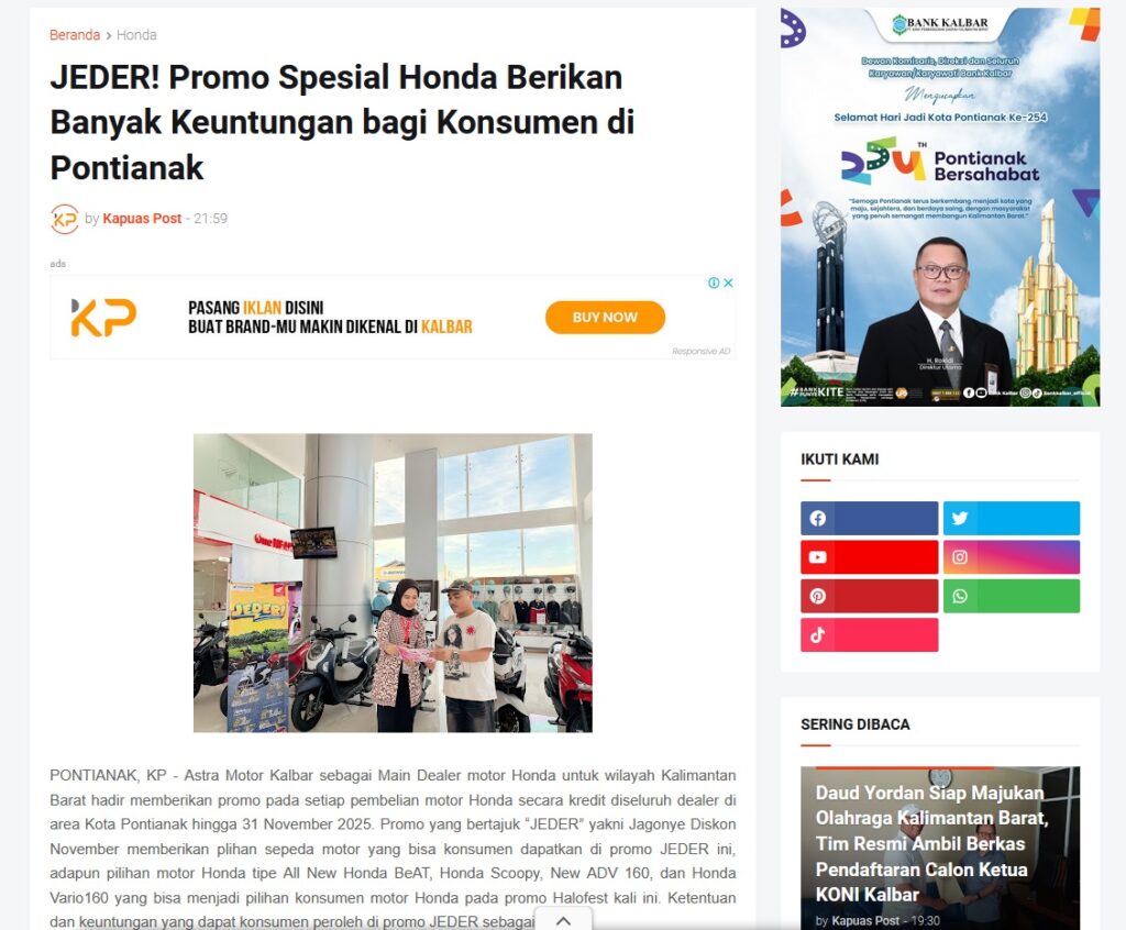 JEDER! Promo Spesial Honda Berikan Banyak Keuntungan bagi Konsumen di Pontianak