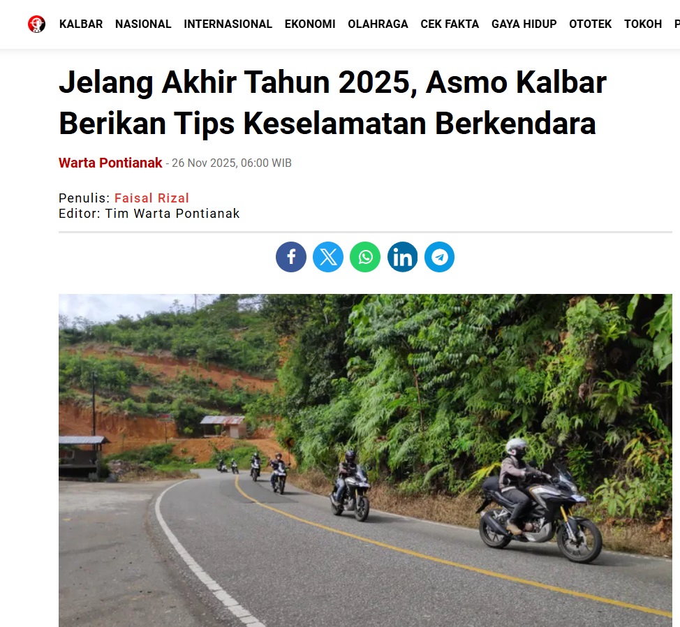 Jelang Akhir Tahun 2025, Asmo Kalbar Berikan Tips Keselamatan Berkendara by Faisal Rizal 26 November 2025 in Silahkan kunjungi https://wartapontianak.pikiran-rakyat.com/gaya-hidup/pr-1179818200/jelang-akhir-tahun-2025-asmo-kalbar-berikan-tips-keselamatan-berkendara. You Might Like Regional Public Launching New ADV160 The SUV Pride Grand Launching New PCX 160 Truly Exceptional! Tetap hati-hati ya bro sist berkendara saat hujan.