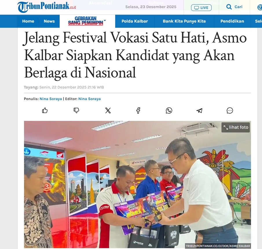 Jelang Festival Vokasi Satu Hati, Asmo Kalbar Siapkan Kandidat yang Akan Berlaga di Nasional by Nina Soraya 22 Desember 2025 in Silahkan kunjungi https://pontianak.tribunnews.com/metropolis/1155288/jelang-festival-vokasi-satu-hati-asmo-kalbar-siapkan-kandidat-yang-akan-berlaga-di-nasional. You Might Like Regional Public Launching New ADV160 The SUV Pride Grand Launching New PCX 160 Truly Exceptional! Tetap hati-hati ya bro sist berkendara saat hujan.