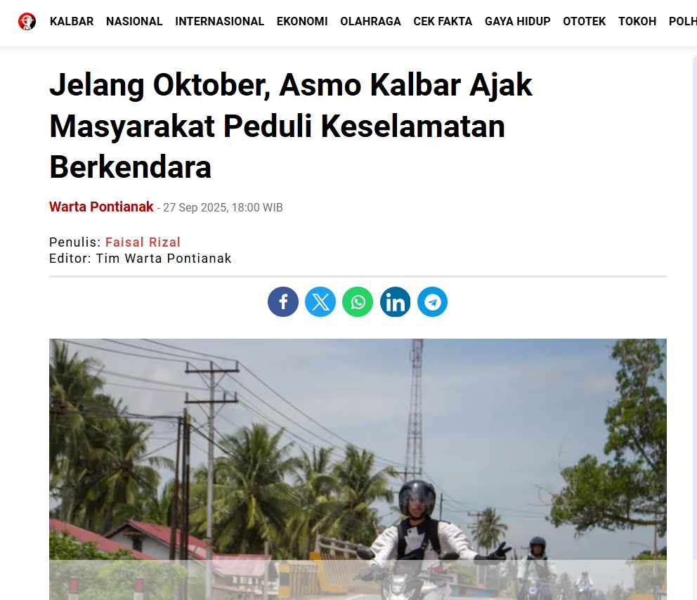 Jelang Oktober, Asmo Kalbar Ajak Masyarakat Peduli Keselamatan Berkendara by Faisal Rizal 27 September 2025 in Silahkan kunjungi https://wartapontianak.pikiran-rakyat.com/gaya-hidup/pr-1179675881/jelang-oktober-asmo-kalbar-ajak-masyarakat-peduli-keselamatan-berkendara. You Might Like Regional Public Launching New ADV160 The SUV Pride Grand Launching New PCX 160 Truly Exceptional! Tetap hati-hati ya bro sist berkendara saat hujan.
