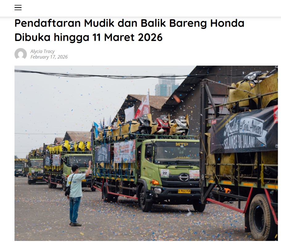Jelang Ramadhan, pendaftaran mudik dan balik bareng Honda dibuka by Dedi 12 Februari 2026 in Silahkan kunjungi https://kalbar.antaranews.com/berita/688630/jelang-ramadhan-pendaftaran-mudik-dan-balik-bareng-honda-dibuka. You Might Like Regional Public Launching New ADV160 The SUV Pride Grand Launching New PCX 160 Truly Exceptional! Tetap hati-hati ya bro sist berkendara saat hujan.