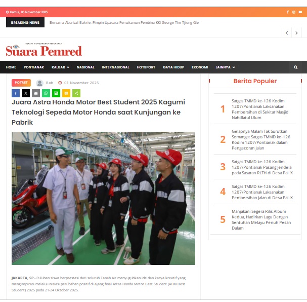 Juara Astra Honda Motor Best Student 2025 Kagumi Teknologi Sepeda Motor Honda saat Kunjungan ke Pabrik by masmul 1 November 2025 in Silahkan kunjungi https://www.suarapemredkalbar.com/read/potret/01112025/juara-astra-honda-motor-best-student-2025-kagumi-teknologi-sepeda-motor-honda-saat-kunjungan-ke-pabrik. You Might Like Regional Public Launching New ADV160 The SUV Pride Grand Launching New PCX 160 Truly Exceptional! Tetap hati-hati ya bro sist berkendara saat hujan.
