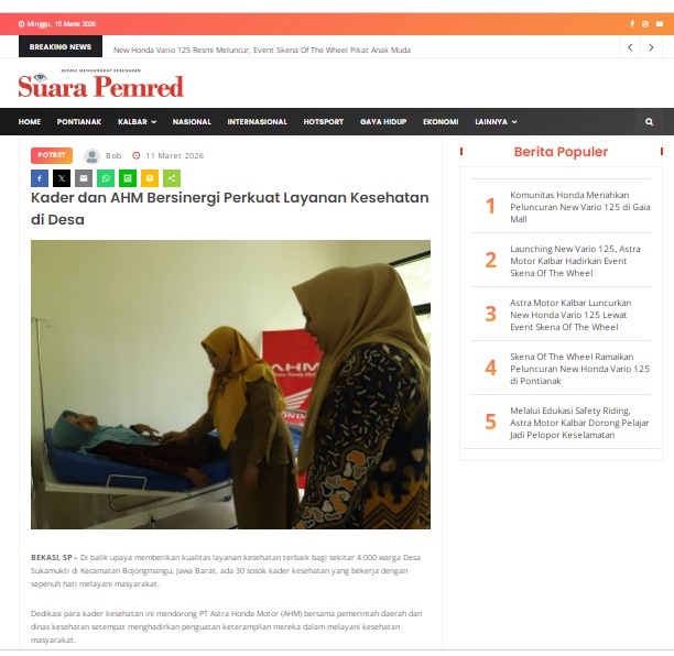 Kader dan AHM Bersinergi Perkuat Layanan Kesehatan di Desa by masmul 11 Maret 2026 in Silahkan kunjungi https://www.suarapemredkalbar.com/read/potret/11032026/kader-dan-ahm-bersinergi-perkuat-layanan-kesehatan-di-desa. You Might Like Regional Public Launching New ADV160 The SUV Pride Grand Launching New PCX 160 Truly Exceptional! Tetap hati-hati ya bro sist berkendara saat hujan.