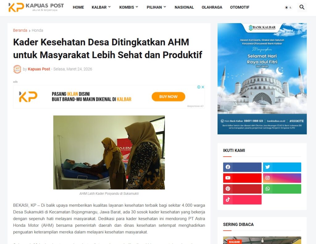 Kader Kesehatan Desa Ditingkatkan AHM untuk Masyarakat Lebih Sehat dan Produktif by Muhammad Arif 24 Maret 2026 in Silahkan kunjungi https://www.kapuaspost.web.id/2026/03/kader-kesehatan-desa-ditingkatkan-ahm.html. Tags: astra Astra Motor kalbar Astra Motor Pontianak astramotor honda kalbar pontianak sepeda motor You Might Like Regional Public Launching New ADV160 The SUV Pride Grand Launching New PCX 160 Truly Exceptional! Tetap hati-hati ya bro sist berkendara saat hujan.
