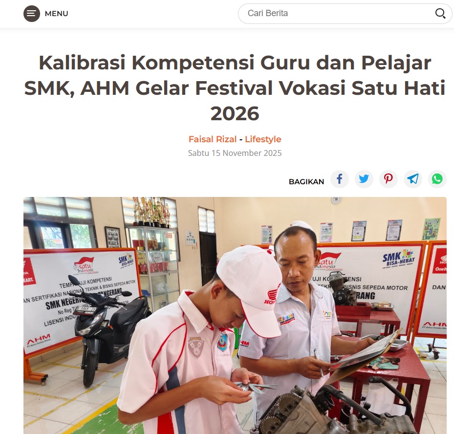Kalibrasi Kompetensi Guru dan Pelajar SMK, AHM Gelar Festival Vokasi Satu Hati 2026 by Dodi Dodi 15 November 2025 in Silahkan kunjungi https://harianberkat.com/2025/11/15/kalibrasi-kompetensi-guru-dan-pelajar-smk-ahm-gelar-festival-vokasi-satu-hati-2026/. You Might Like Regional Public Launching New ADV160 The SUV Pride Grand Launching New PCX 160 Truly Exceptional! Tetap hati-hati ya bro sist berkendara saat hujan.