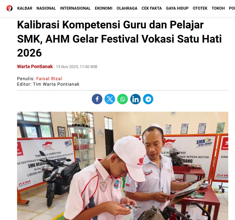 Kalibrasi Kompetensi Guru dan Pelajar SMK, AHM Gelar Festival Vokasi Satu Hati 2026 by Faisal Rizal 15 November 2025 in Silahkan kunjungi https://wartapontianak.pikiran-rakyat.com/gaya-hidup/pr-1179792845/kalibrasi-kompetensi-guru-dan-pelajar-smk-ahm-gelar-festival-vokasi-satu-hati-2026. You Might Like Regional Public Launching New ADV160 The SUV Pride Grand Launching New PCX 160 Truly Exceptional! Tetap hati-hati ya bro sist berkendara saat hujan.