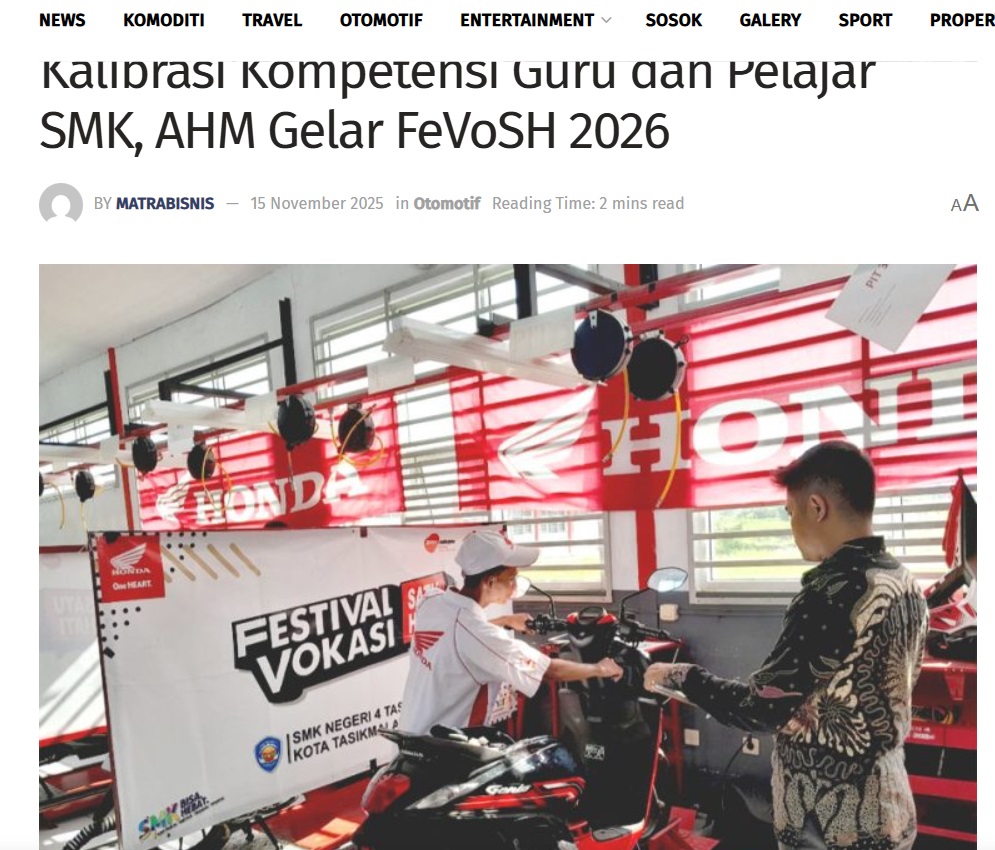 Kalibrasi Kompetensi Guru dan Pelajar SMK, AHM Gelar FeVoSH 2026 by Sri Yuliantiningsih 15 November 2025 in Silahkan kunjungi https://matrabisnis.id/2025/11/15/kalibrasi-kompetensi-guru-dan-pelajar-smk-ahm-gelar-fevosh-2026/. You Might Like Regional Public Launching New ADV160 The SUV Pride Grand Launching New PCX 160 Truly Exceptional! Tetap hati-hati ya bro sist berkendara saat hujan.