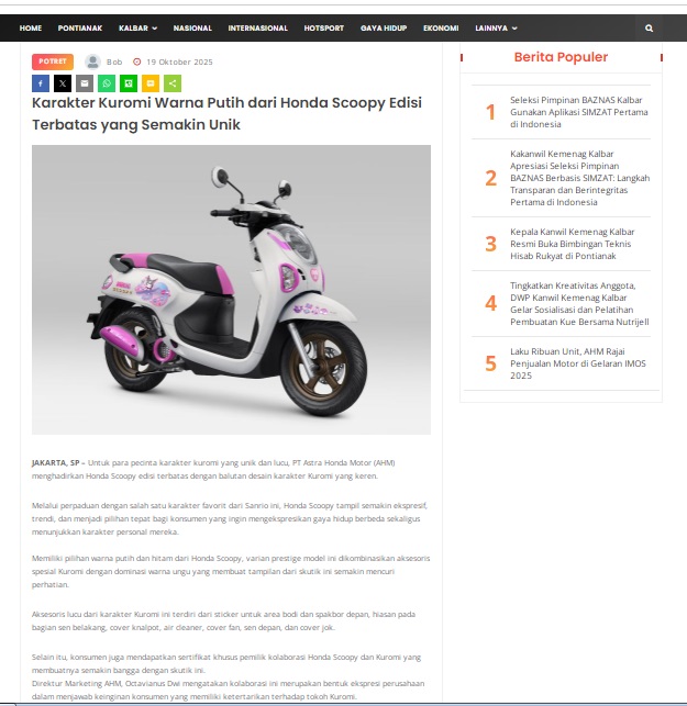 Karakter Kuromi Warna Putih dari Honda Scoopy Edisi Terbatas yang Semakin Unik by masmul 19 Oktober 2025 in Silahkan kunjungi https://www.suarapemredkalbar.com/read/potret/19102025/karakter-kuromi-warna-putih-dari-honda-scoopy-edisi-terbatas-yang-semakin-unik. You Might Like Regional Public Launching New ADV160 The SUV Pride Grand Launching New PCX 160 Truly Exceptional! Tetap hati-hati ya bro sist berkendara saat hujan.