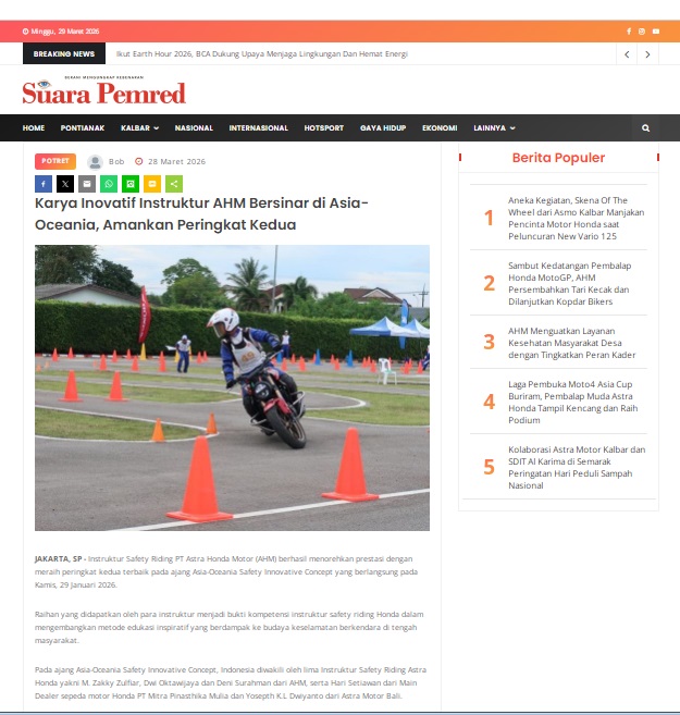 Karya Inovatif Instruktur AHM Bersinar di Asia-Oceania, Amankan Peringkat Kedua by masmul 28 Maret 2026 in Silahkan kunjungi https://www.suarapemredkalbar.com/read/potret/28032026/karya-inovatif-instruktur-ahm-bersinar-di-asia-oceania-amankan-peringkat-kedua. You Might Like Regional Public Launching New ADV160 The SUV Pride Grand Launching New PCX 160 Truly Exceptional! Tetap hati-hati ya bro sist berkendara saat hujan.