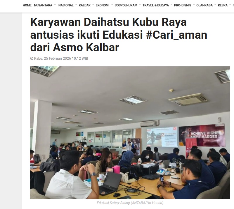 Karyawan Daihatsu Kubu Raya antusias ikuti Edukasi #Cari_aman dari Asmo Kalbar by Dedi 25 Februari 2026 in Silahkan kunjungi https://kalbar.antaranews.com/berita/691290/karyawan-daihatsu-kubu-raya-antusias-ikuti-edukasi-cari-aman-dari-asmo-kalbar. You Might Like Regional Public Launching New ADV160 The SUV Pride Grand Launching New PCX 160 Truly Exceptional! Tetap hati-hati ya bro sist berkendara saat hujan.