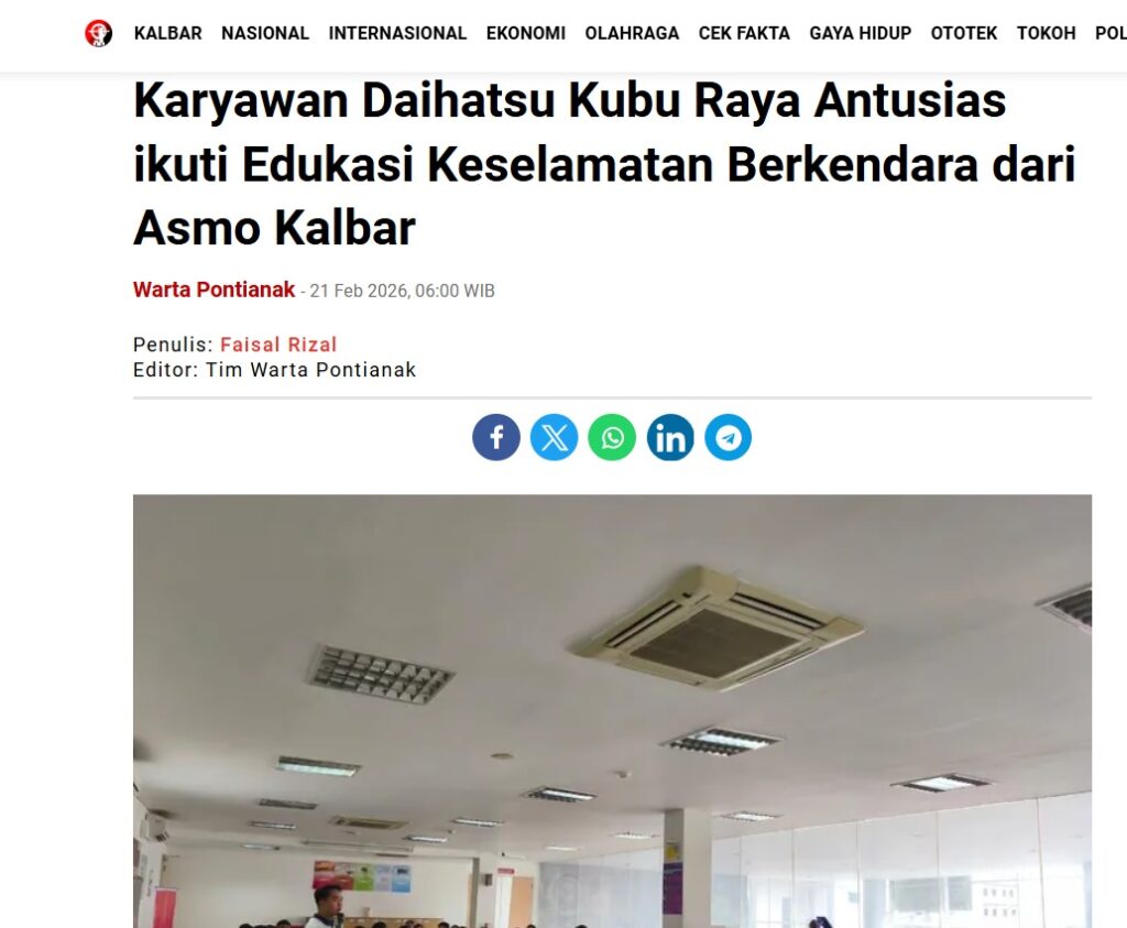 Karyawan Daihatsu Kubu Raya Antusias ikuti Edukasi Keselamatan Berkendara dari Asmo Kalbar by Faisal Rizal 21 Februari 2026 in Silahkan kunjungi https://wartapontianak.pikiran-rakyat.com/gaya-hidup/pr-11710023448/karyawan-daihatsu-kubu-raya-antusias-ikuti-edukasi-keselamatan-berkendara-dari-asmo-kalbar. You Might Like Regional Public Launching New ADV160 The SUV Pride Grand Launching New PCX 160 Truly Exceptional! Tetap hati-hati ya bro sist berkendara saat hujan.