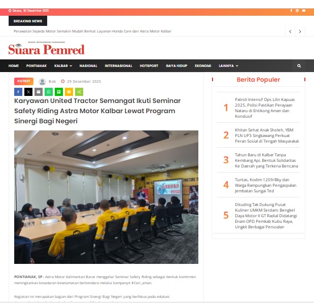 Karyawan United Tractor Semangat Ikuti Seminar Safety Riding Astra Motor Kalbar Lewat Program Sinergi Bagi Negeri by masmul 29 Desember 2025 in Silahkan kunjungi https://www.suarapemredkalbar.com/read/potret/29122025/karyawan-united-tractor-semangat-ikuti-seminar-safety-riding-astra-motor-kalbar-lewat-program-sinergi-bagi-negeri. You Might Like Regional Public Launching New ADV160 The SUV Pride Grand Launching New PCX 160 Truly Exceptional! Tetap hati-hati ya bro sist berkendara saat hujan.