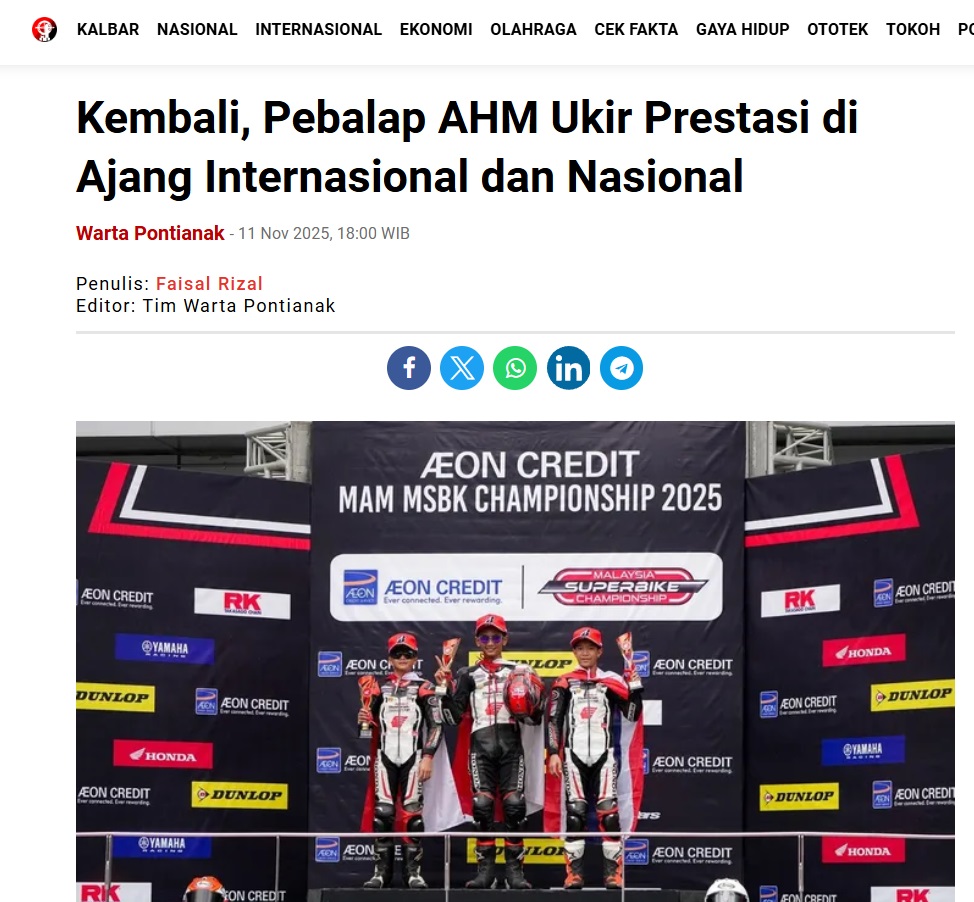 Kembali, Pebalap AHM Ukir Prestasi di Ajang Internasional dan Nasional by Faisal Rizal 11 November 2025 in Silahkan kunjungi https://wartapontianak.pikiran-rakyat.com/olahraga/pr-1179783230/kembali-pebalap-ahm-ukir-prestasi-di-ajang-internasional-dan-nasional. You Might Like Regional Public Launching New ADV160 The SUV Pride Grand Launching New PCX 160 Truly Exceptional! Tetap hati-hati ya bro sist berkendara saat hujan.