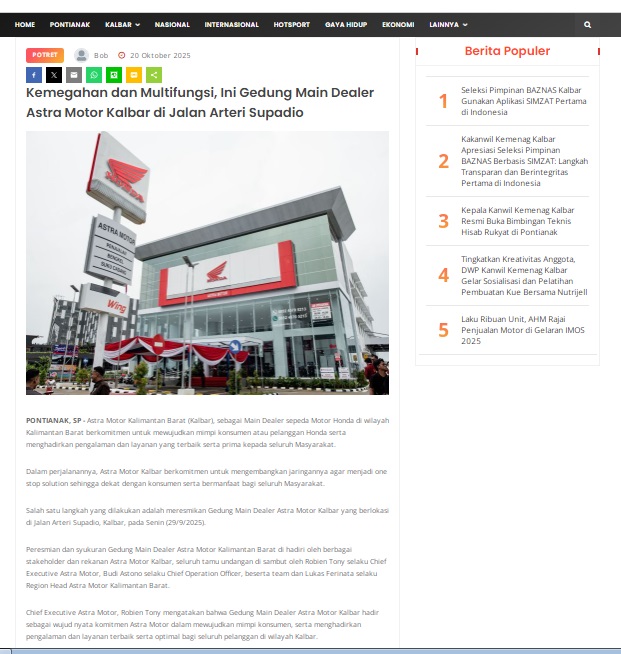 Kemegahan dan Multifungsi, Ini Gedung Main Dealer Astra Motor Kalbar di Jalan Arteri Supadio by masmul 20 Oktober 2025 in Silahkan kunjungi https://www.suarapemredkalbar.com/read/potret/20102025/kemegahan-dan-multifungsi-ini-gedung-main-dealer-astra-motor-kalbar-di-jalan-arteri-supadio. You Might Like Regional Public Launching New ADV160 The SUV Pride Grand Launching New PCX 160 Truly Exceptional! Tetap hati-hati ya bro sist berkendara saat hujan.
