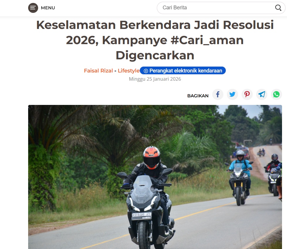 Keselamatan Berkendara Jadi Resolusi 2026, Kampanye #Cari_aman Digencarkan by Dodi Dodi 25 Januari 2026 in Silahkan kunjungi https://harianberkat.com/2026/01/25/keselamatan-berkendara-jadi-resolusi-2026-kampanye-cari_aman-digencarkan/. You Might Like Regional Public Launching New ADV160 The SUV Pride Grand Launching New PCX 160 Truly Exceptional! Tetap hati-hati ya bro sist berkendara saat hujan.