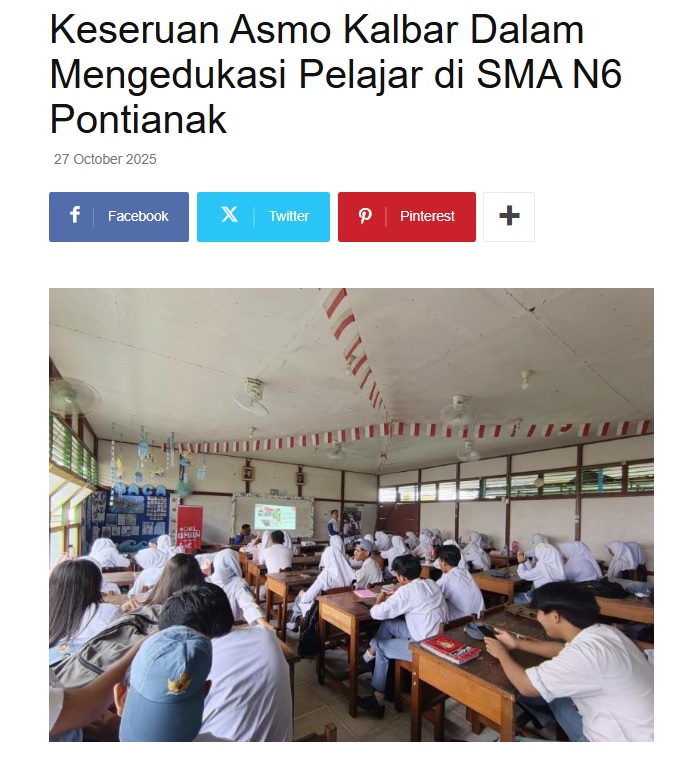 Keseruan Asmo Kalbar Dalam Mengedukasi Pelajar di SMA N6 Pontianak by Nova Sari 27 Oktober 2025 in Silahkan kunjungi https://equator.co.id/asmo-kalbar-ajak-siswa-sman-6-pontianak-cari_aman-di-jalan-raya/. You Might Like Regional Public Launching New ADV160 The SUV Pride Grand Launching New PCX 160 Truly Exceptional! Tetap hati-hati ya bro sist berkendara saat hujan.