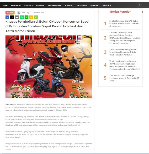 Khusus Pembelian di Bulan Oktober, Konsumen Loyal di Kabupaten Sambas Dapat Promo Halofest dari Astra Motor Kalbar by masmul 21 Oktober 2025 in Silahkan kunjungi https://www.suarapemredkalbar.com/read/potret/21102025/khusus-pembelian-di-bulan-oktober-konsumen-loyal-di-kabupaten-sambas-dapat-promo-halofest-dari-astra-motor-kalbar. You Might Like Regional Public Launching New ADV160 The SUV Pride Grand Launching New PCX 160 Truly Exceptional! Tetap hati-hati ya bro sist berkendara saat hujan.