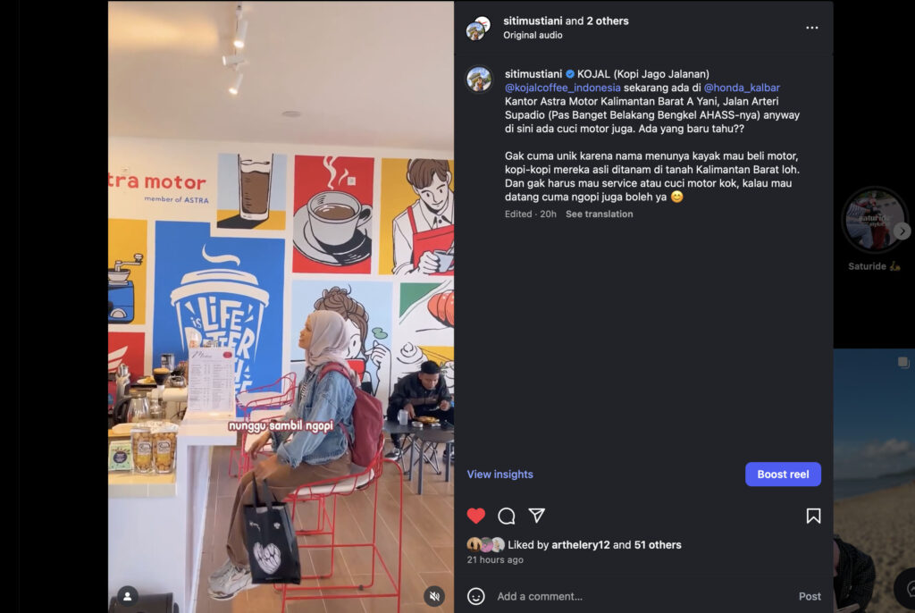 KOJAL (Kopi Jago Jalanan) x Piston Cafe di Astra Motor Kalimantan Barat by Siti Mustiani 5 Oktober 2025 in Silahkan kunjungi https://www.instagram.com/reel/DPgnCj-kc3t/. Tags: Astra Motor Kalimantan Barat Coffee Shop Honda Kalbar KOJAL Kopi Jago Jalanan Piston Cafe Warung Kopi Siti Mustiani http://www.sitimustiani.com Love to travel and adore creative things ✨ You Might Like Regional Public Launching New ADV160 The SUV Pride Grand Launching New PCX 160 Truly Exceptional! Tetap hati-hati ya bro sist berkendara saat hujan.