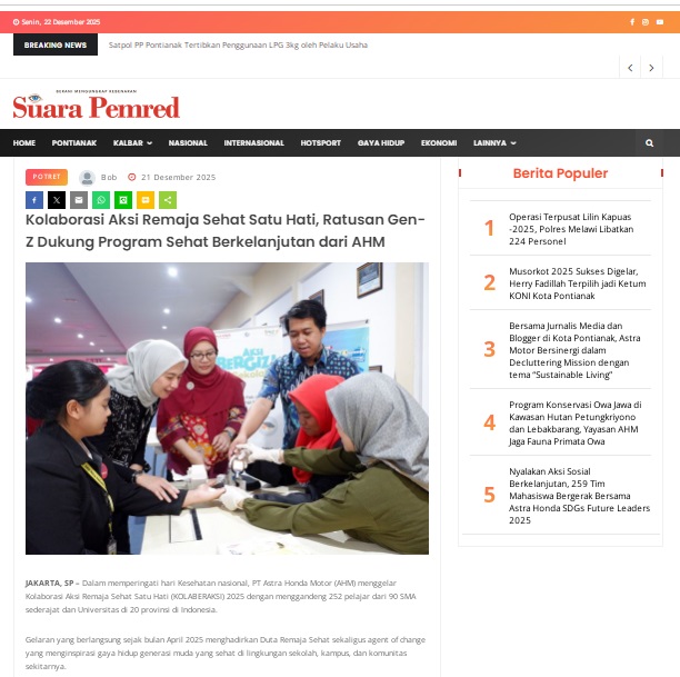 Kolaborasi Aksi Remaja Sehat Satu Hati, Ratusan Gen-Z Dukung Program Sehat Berkelanjutan dari AHM by masmul 21 Desember 2025 in Silahkan kunjungi https://www.suarapemredkalbar.com/read/potret/21122025/kolaborasi-aksi-remaja-sehat-satu-hati-ratusan-gen-z-dukung-program-sehat-berkelanjutan-dari-ahm. You Might Like Regional Public Launching New ADV160 The SUV Pride Grand Launching New PCX 160 Truly Exceptional! Tetap hati-hati ya bro sist berkendara saat hujan.