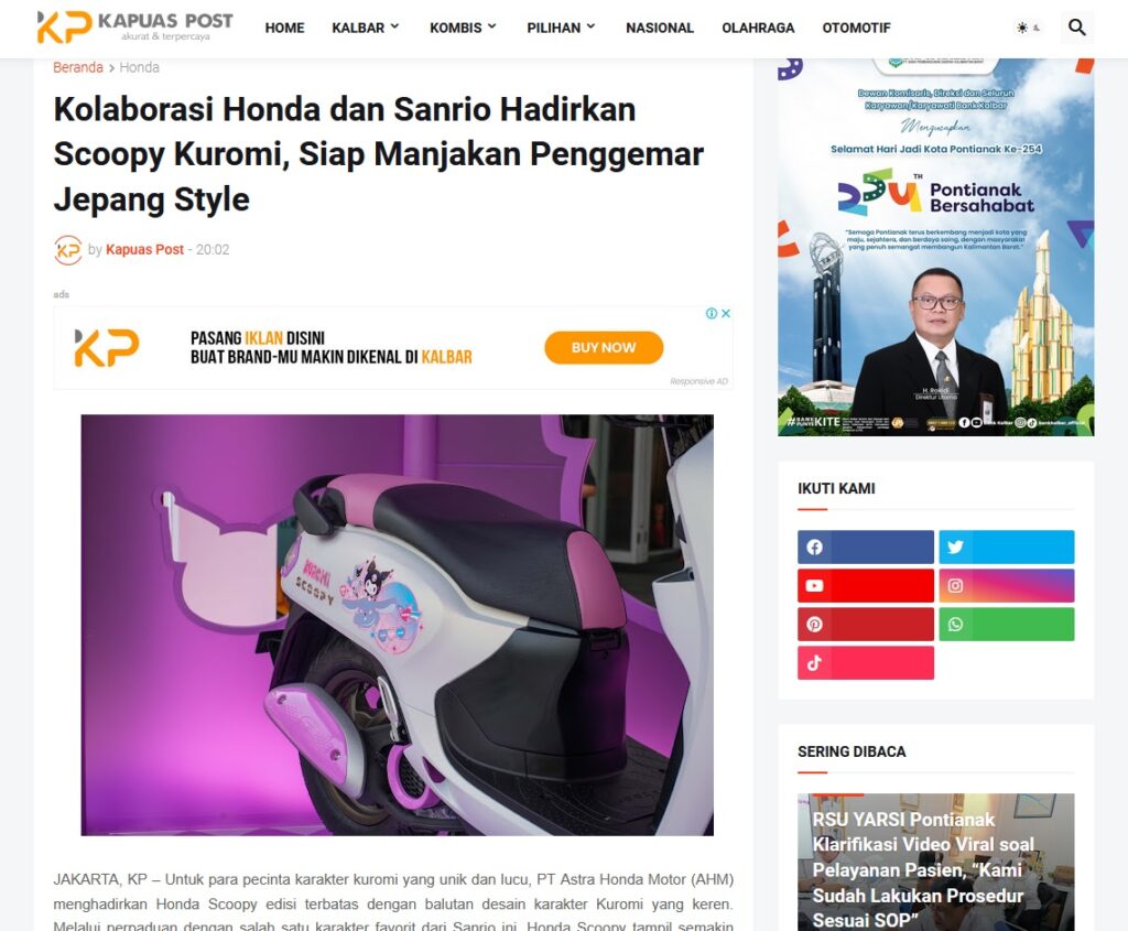 Kolaborasi Honda dan Sanrio Hadirkan Scoopy Kuromi, Siap Manjakan Penggemar Jepang Style by Muhammad Arif 11 November 2025 in Silahkan kunjungi https://www.kapuaspost.web.id/2025/11/kolaborasi-honda-dan-sanrio-hadirkan.html. Tags: astra Astra Motor kalbar Astra Motor Pontianak astramotor honda kalbar pontianak sepeda motor You Might Like Regional Public Launching New ADV160 The SUV Pride Grand Launching New PCX 160 Truly Exceptional! Tetap hati-hati ya bro sist berkendara saat hujan.