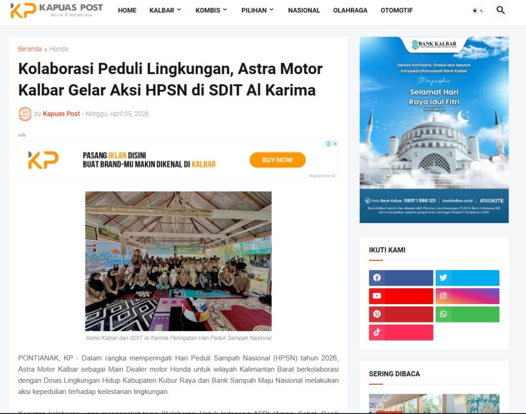 Kolaborasi Peduli Lingkungan, Astra Motor Kalbar Gelar Aksi HPSN di SDIT Al Karima by Muhammad Arif 5 April 2026 in Silahkan kunjungi https://www.kapuaspost.web.id/2026/04/kolaborasi-peduli-lingkungan-astra.html. Tags: astra Astra Motor kalbar Astra Motor Pontianak astramotor honda kalbar pontianak sepeda motor You Might Like Regional Public Launching New ADV160 The SUV Pride Grand Launching New PCX 160 Truly Exceptional! Tetap hati-hati ya bro sist berkendara saat hujan.