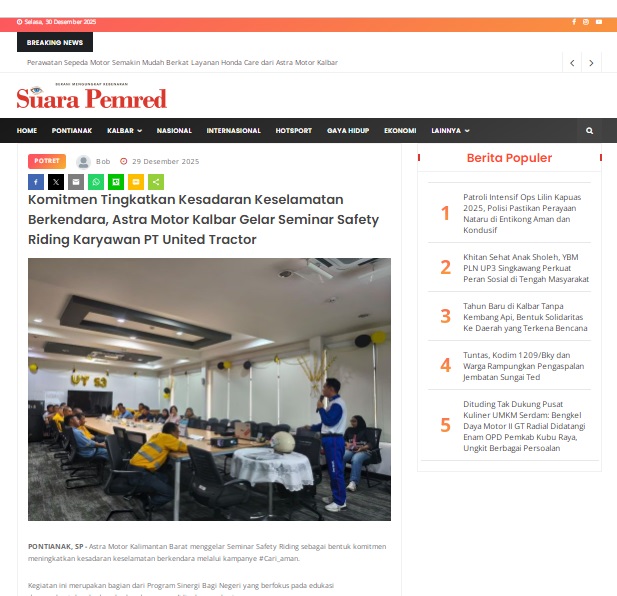 Komitmen Tingkatkan Kesadaran Keselamatan Berkendara, Astra Motor Kalbar Gelar Seminar Safety Riding Karyawan PT United Tractor by masmul 29 Desember 2025 in Silahkan kunjungi https://www.suarapemredkalbar.com/read/potret/29122025/komitmen-tingkatkan-kesadaran-keselamatan-berkendara-astra-motor-kalbar-gelar-seminar-safety-riding-karyawan-pt-united-tractor. You Might Like Regional Public Launching New ADV160 The SUV Pride Grand Launching New PCX 160 Truly Exceptional! Tetap hati-hati ya bro sist berkendara saat hujan.