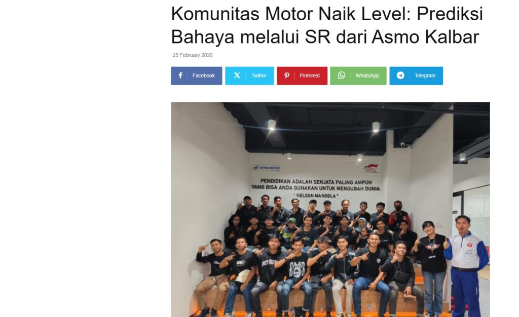 Komunitas Motor Naik Level: Prediksi Bahaya melalui SR dari Asmo Kalbar by Nova Sari 25 Februari 2026 in Silahkan kunjungi https://equator.co.id/komunitas-motor-naik-level-prediksi-bahaya-melalui-sr-dari-asmo-kalbar/#google_vignette. You Might Like Regional Public Launching New ADV160 The SUV Pride Grand Launching New PCX 160 Truly Exceptional! Tetap hati-hati ya bro sist berkendara saat hujan.