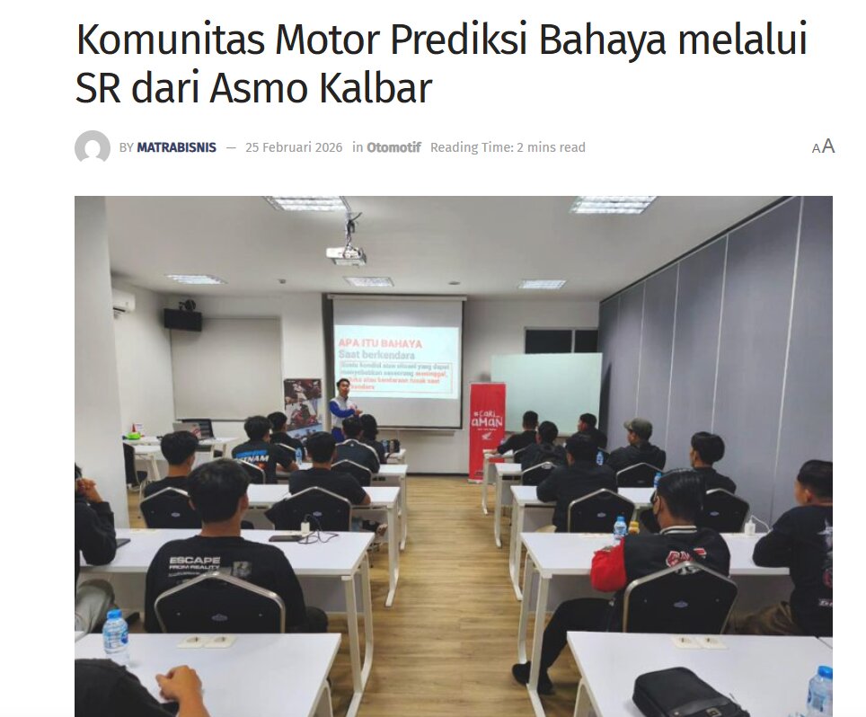 Komunitas Motor Prediksi Bahaya melalui SR dari Asmo Kalbar by Sri Yuliantiningsih 25 Februari 2026 in Silahkan kunjungi https://matrabisnis.id/2026/02/25/komunitas-motor-prediksi-bahaya-melalui-sr-dari-asmo-kalbar/. You Might Like Regional Public Launching New ADV160 The SUV Pride Grand Launching New PCX 160 Truly Exceptional! Tetap hati-hati ya bro sist berkendara saat hujan.