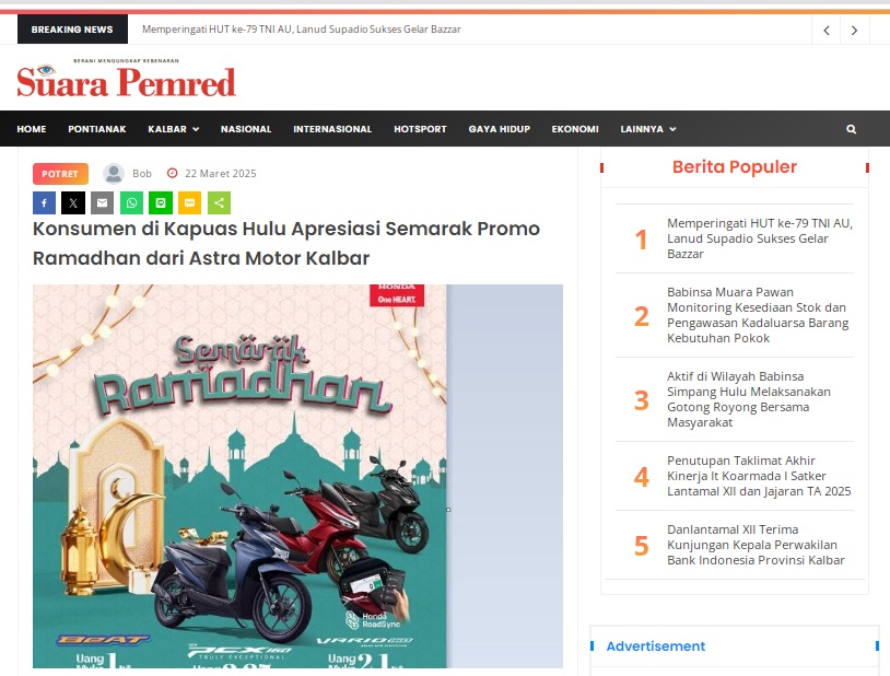 Konsumen di Kapuas Hulu Apresiasi Semarak Promo Ramadhan dari Astra Motor Kalbar by masmul 22 Maret 2025 in Silahkan kunjungi https://www.suarapemredkalbar.com/read/potret/22032025/konsumen-di-kapuas-hulu-apresiasi-semarak-promo-ramadhan-dari-astra-motor-kalbar. You Might Like Regional Public Launching New ADV160 The SUV Pride Grand Launching New PCX 160 Truly Exceptional! Tetap hati-hati ya bro sist berkendara saat hujan.