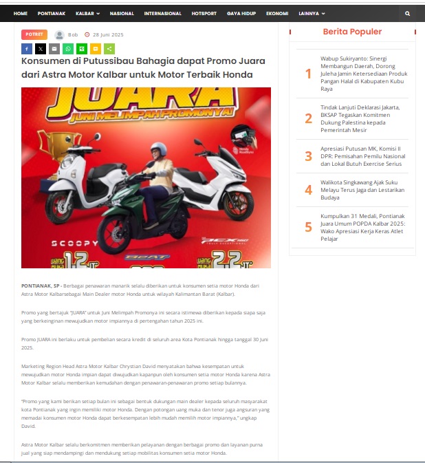 Konsumen di Putussibau Bahagia dapat Promo Juara dari Astra Motor Kalbar untuk Motor Terbaik Honda by masmul 28 Juni 2025 in Silahkan kunjungi https://www.suarapemredkalbar.com/read/potret/28062025/konsumen-di-putussibau-bahagia-dapat-promo-juara-dari-astra-motor-kalbar-untuk-motor-terbaik-honda. You Might Like Regional Public Launching New ADV160 The SUV Pride Grand Launching New PCX 160 Truly Exceptional! Tetap hati-hati ya bro sist berkendara saat hujan.