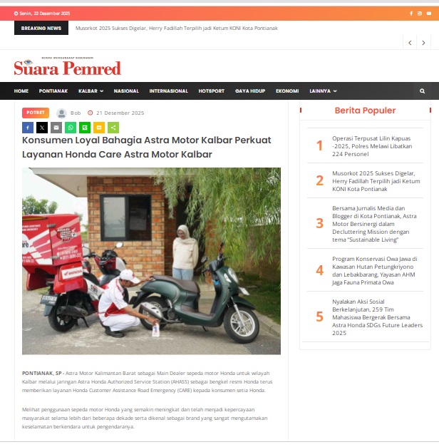 Konsumen Loyal Bahagia Astra Motor Kalbar Perkuat Layanan Honda Care Astra Motor Kalbar by masmul 21 Desember 2025 in Silahkan kunjungi https://www.suarapemredkalbar.com/read/potret/21122025/konsumen-loyal-bahagia-astra-motor-kalbar-perkuat-layanan-honda-care-astra-motor-kalbar. You Might Like Regional Public Launching New ADV160 The SUV Pride Grand Launching New PCX 160 Truly Exceptional! Tetap hati-hati ya bro sist berkendara saat hujan.