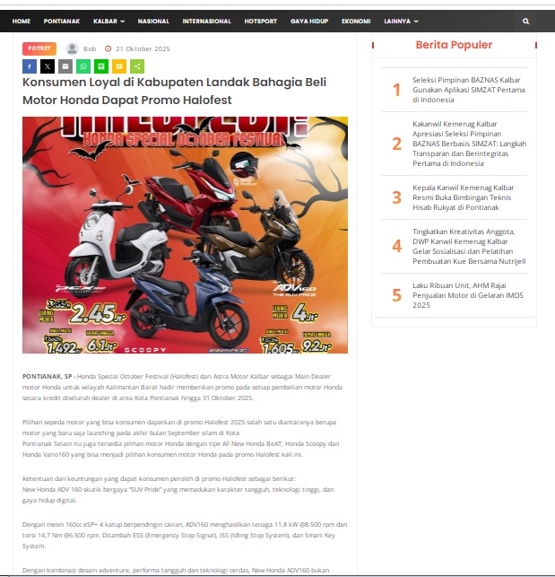 Konsumen Loyal di Kabupaten Landak Bahagia Beli Motor Honda Dapat Promo Halofest by masmul 21 Oktober 2025 in Silahkan kunjungi https://www.suarapemredkalbar.com/read/potret/21102025/konsumen-loyal-di-kabupaten-landak-bahagia-beli-motor-honda-dapat-promo-halofest. You Might Like Regional Public Launching New ADV160 The SUV Pride Grand Launching New PCX 160 Truly Exceptional! Tetap hati-hati ya bro sist berkendara saat hujan.