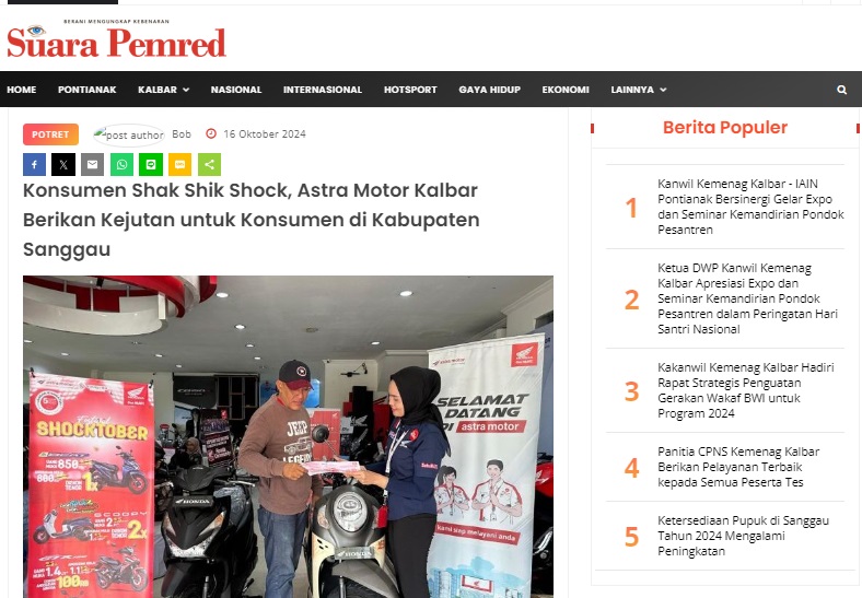 Konsumen Shak Shik Shock, Astra Motor Kalbar Berikan Kejutan untuk Konsumen di Kabupaten Sanggau by masmul 16 Oktober 2024 in Silahkan kunjungi https://www.suarapemredkalbar.com/read/potret/16102024/konsumen-shak-shik-shock-astra-motor-kalbar-berikan-kejutan-untuk-konsumen-di-kabupaten-sanggau. You Might Like Regional Public Launching New ADV160 The SUV Pride Grand Launching New PCX 160 Truly Exceptional! Tetap hati-hati ya bro sist berkendara saat hujan.
