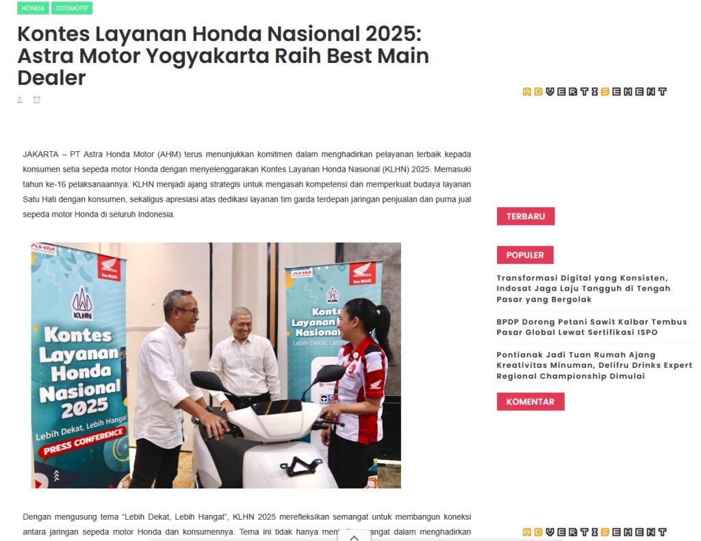 Kontes Layanan Honda Nasional 2025: Astra Motor Yogyakarta Raih Best Main Dealer by Muhammad Arif 26 Agustus 2025 in Silahkan kunjungi https://www.kapuaspost.web.id/2025/08/kontes-layanan-honda-nasional-2025.html. Tags: astra Astra Motor kalbar Astra Motor Pontianak astramotor honda kalbar pontianak sepeda motor You Might Like Regional Public Launching New ADV160 The SUV Pride Grand Launching New PCX 160 Truly Exceptional! Tetap hati-hati ya bro sist berkendara saat hujan.