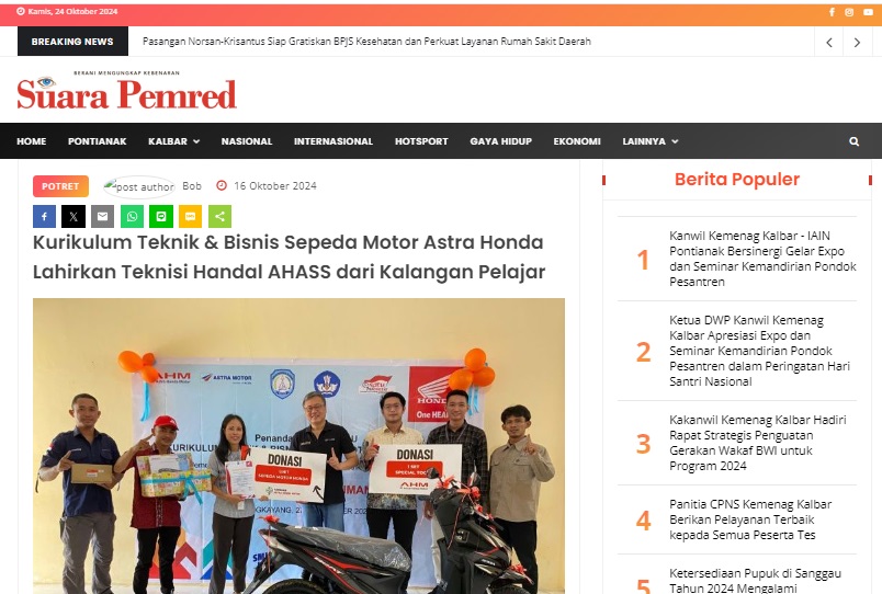 Kurikulum Teknik & Bisnis Sepeda Motor Astra Honda Lahirkan Teknisi Handal AHASS dari Kalangan Pelajar by masmul 16 Oktober 2024 in Silahkan kunjungi https://www.suarapemredkalbar.com/read/potret/16102024/kurikulum-teknik-bisnis-sepeda-motor-astra-honda-lahirkan-teknisi-handal-ahass-dari-kalangan-pelajar. You Might Like Regional Public Launching New ADV160 The SUV Pride Grand Launching New PCX 160 Truly Exceptional! Tetap hati-hati ya bro sist berkendara saat hujan.