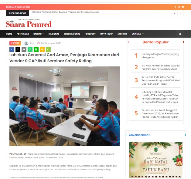 Lahirkan Generasi Cari Aman, Penjaga Keamanan dari Vendor SIGAP Ikuti Seminar Safety Riding by masmul 26 Desember 2025 in Silahkan kunjungi https://www.suarapemredkalbar.com/read/potret/26122025/lahirkan-generasi-cari-aman-penjaga-keamanan-dari-vendor-sigap-ikuti-seminar-safety-riding. You Might Like Regional Public Launching New ADV160 The SUV Pride Grand Launching New PCX 160 Truly Exceptional! Tetap hati-hati ya bro sist berkendara saat hujan.