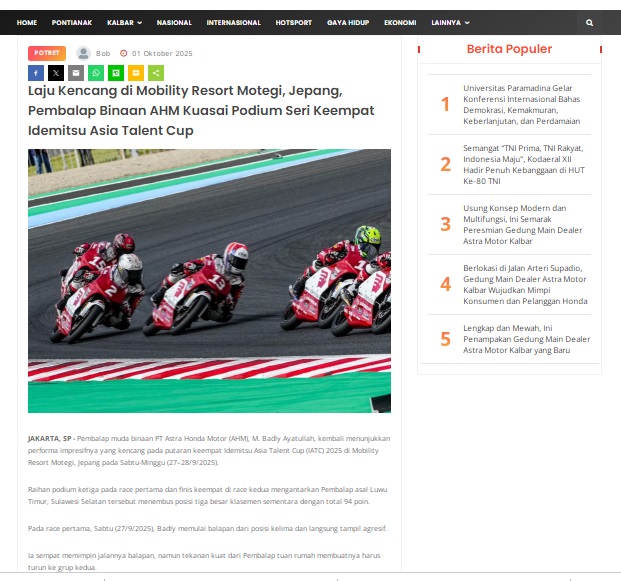 Laju Kencang di Mobility Resort Motegi, Jepang, Pembalap Binaan AHM Kuasai Podium Seri Keempat Idemitsu Asia Talent Cup by masmul 1 Oktober 2025 in Silahkan kunjungi https://www.suarapemredkalbar.com/read/potret/01102025/laju-kencang-di-mobility-resort-motegi-jepang-pembalap-binaan-ahm-kuasai-podium-seri-keempat-idemitsu-asia-talent-cup. You Might Like Regional Public Launching New ADV160 The SUV Pride Grand Launching New PCX 160 Truly Exceptional! Tetap hati-hati ya bro sist berkendara saat hujan.