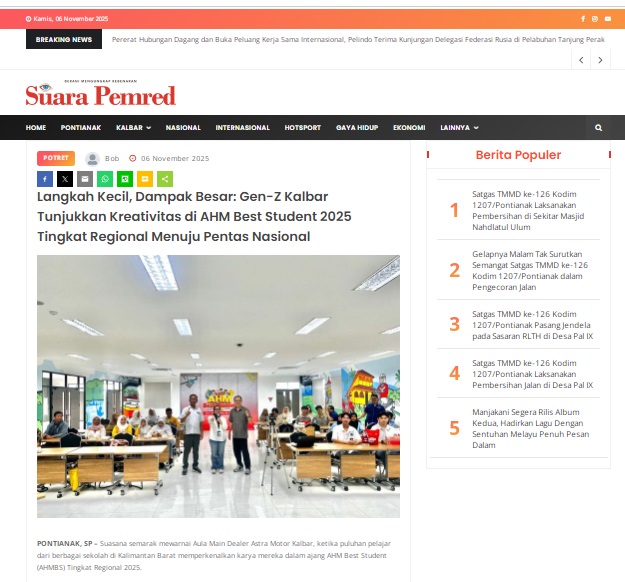 Langkah Kecil, Dampak Besar: Gen-Z Kalbar Tunjukkan Kreativitas di AHM Best Student 2025 Tingkat Regional Menuju Pentas Nasional by masmul 6 November 2025 in Silahkan kunjungi https://www.suarapemredkalbar.com/read/potret/06112025/langkah-kecil-dampak-besar-gen-z-kalbar-tunjukkan-kreativitas-di-ahm-best-student-2025-tingkat-regional-menuju-pentas-nasional. You Might Like Regional Public Launching New ADV160 The SUV Pride Grand Launching New PCX 160 Truly Exceptional! Tetap hati-hati ya bro sist berkendara saat hujan.