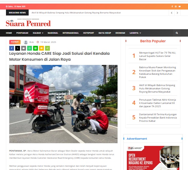Layanan Honda CARE Siap Jadi Solusi dari Kendala Motor Konsumen di Jalan Raya by masmul 19 Maret 2025 in Silahkan kunjungi https://www.suarapemredkalbar.com/read/potret/19032025/layanan-honda-care-siap-jadi-solusi-dari-kendala-motor-konsumen-di-jalan-raya. You Might Like Regional Public Launching New ADV160 The SUV Pride Grand Launching New PCX 160 Truly Exceptional! Tetap hati-hati ya bro sist berkendara saat hujan.