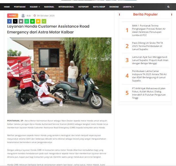 Layanan Honda Customer Assistance Road Emergency dari Astra Motor Kalbar by masmul 9 Oktober 2025 in Silahkan kunjungi https://www.suarapemredkalbar.com/read/potret/09102025/layanan-honda-customer-assistance-road-emergency-dari-astra-motor-kalbar. You Might Like Regional Public Launching New ADV160 The SUV Pride Grand Launching New PCX 160 Truly Exceptional! Tetap hati-hati ya bro sist berkendara saat hujan.